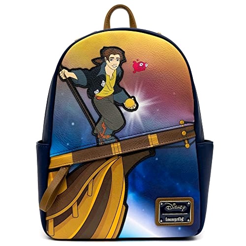Add a bold cosmic twist to your everyday look with the Treasure Planet Loungefly Mini Backpack! The front showcases Jim Hawkins in action against a vibrant galaxy gradient, while the back and straps offer durable comfort in sleek navy with faux leather trim. Compact yet roomy, this bag features a zippered main compartment, interior pockets, and a playful printed lining—perfect for errands, theme parks, or stylish adventures on the go.