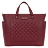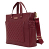 This bag converts between a backpack and a tote bag. Sleek red faux leather makes it the perfect bag for a stylish statement – and you can have some fun by customizing it! On the front, you'll find a quilted section with embroidered pin holes, allowing you to stick on your own pins to customize your look!