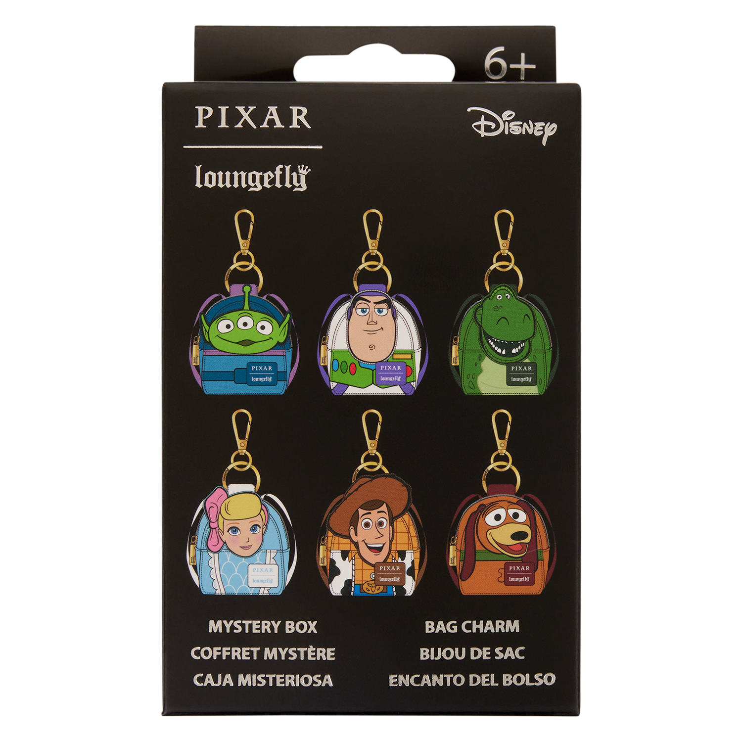 Accessorize your Loungefly accessories with these Disney Toy Story-themed mystery mini backpack keychain charms! Each comes in mystery packaging, so you don't know which you'll get. There are six in total to collect: an alien, Buzz Lightyear, Rex, Bo Peep, Woody, and Slinky Dog! Collect them all and show off your fav characters from Toy Story!