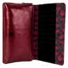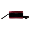 Features: Adjustable, removable crossbody strap, wristlet strap 8 card slots, debossed, metallic faux leather, stud cone, and printed details.