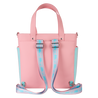 This bag converts between a tote and a backpack. Blue terry cloth highlights a pink faux-leather backdrop. The Barbie "B" appears as a metal charm at the top and you'll find the same logo "burned out" from the terrycloth. Attach and detach the straps as needed for how you want to carry it.