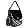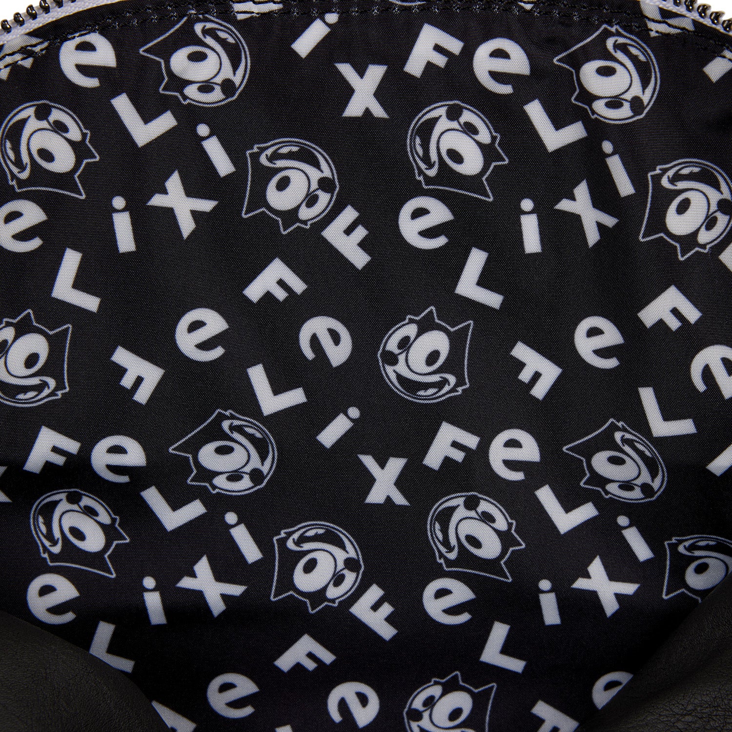 This bag features a molded metal charm of Felix on the front flap. Beneath, you'll find black-and-white checker print. Turn the bag around to find another illustration of Felix! Plus, there's a super cute coin bag in the shape of Felix's head – the eyes are lenticular and show his gaze going back and forth.