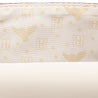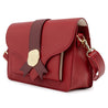Features: Snap closure, adjustable shoulder strap, and debossed and applique details.