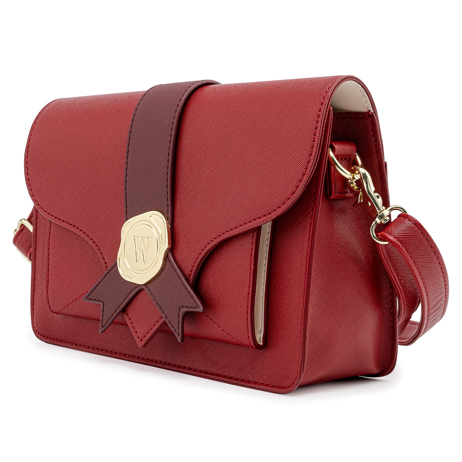 Add a dash of magical charm to your wardrobe with this Harry Potter crossbody bag. The faux leather purse, with metal rivet, debossed and applique details, features a Howler letter addressed to Harry's friend Ron Weasley—or Ronald, if you're his scolding mother—that opens to reveal the message inside.