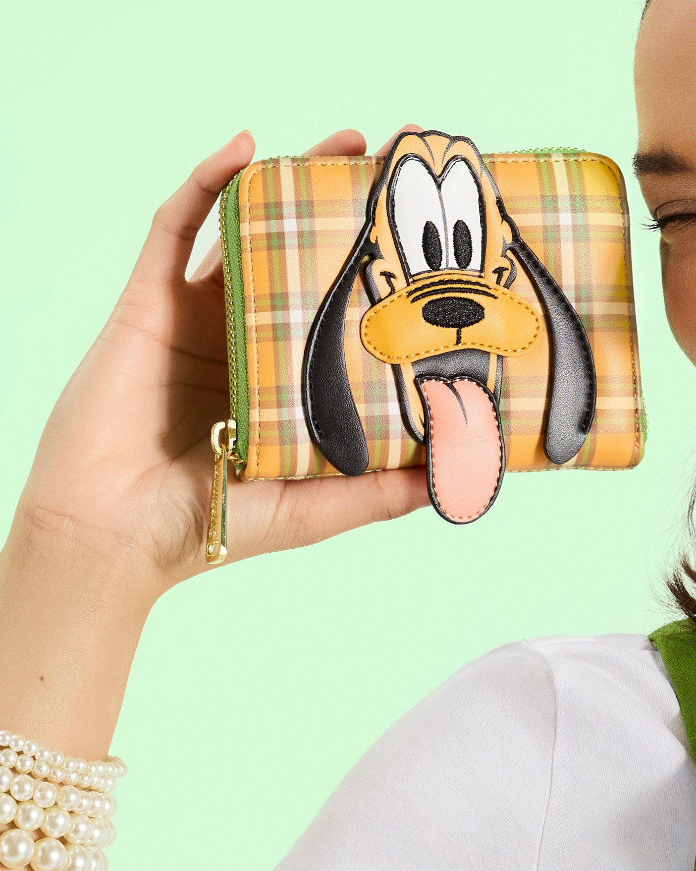 Loungefly Disney Pluto 95th Anniversary Plaid Zip Around Wallet
