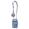 This crossbody features Sorcerer Mickey in embossed detail on the front of the bag. He casts magic and the sparkles above him are embroidered. Blue iridescent material really makes this bag stand out. Attached to the strap is a detachable coin bag that features Mickey's sorcerer hat on it!