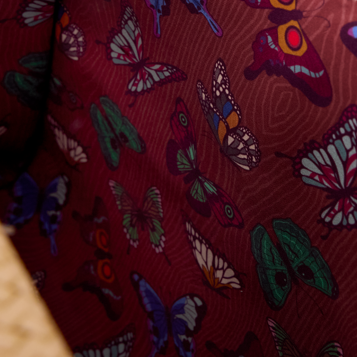 Rustic florals for spring are in! And the perfect accessory is this crossbody bag inspired by Groot from Marvel’s Guardians of the Galaxy. Groot hangs out amongst embroidered florals on the front and back of the bag. Chenille butterflies flutter on a rattan-textured faux leather top flap. Look closely and you’ll see a molded metal charm of Groot, two green tassels hang below him. The look is topped off with a real wooden handle!