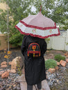 Pagoda Umbrella: Ruffle, Stripes, Red with White Dots & Rose Print